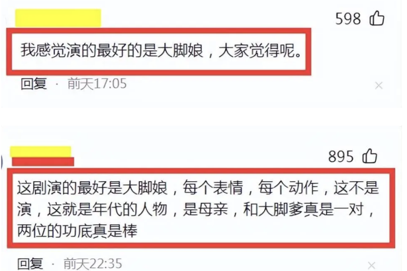 观众喜欢大脚娘,因为她不同于农村剧里常见的刁钻婆婆。尽管家境贫穷、身份卑微,但刻在骨子里的善良、宽容,让这个人物闪闪发光。