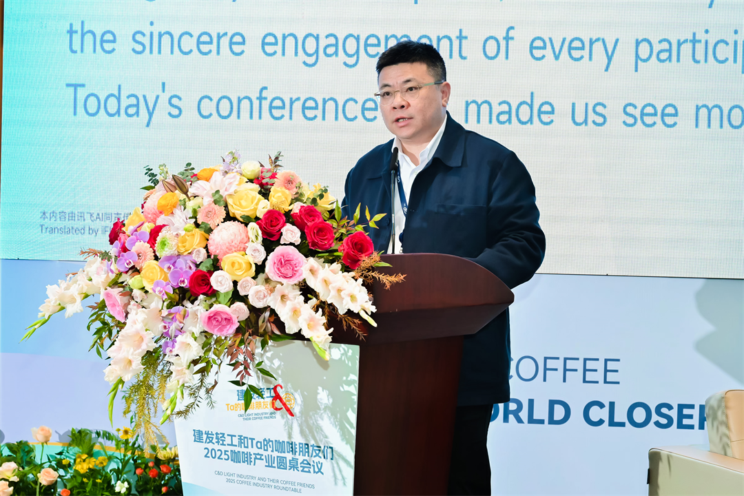 王志兵在致辞中表示,本次会议旨在打造一个高质量、开放与可持续发展的交流平台。建发将与各位咖啡产业伙伴一起,把全球优质的咖啡生豆引入中国,并把中国市场的需求传递给全世界。